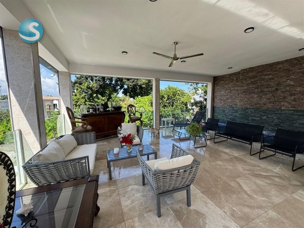 Hermosa casa en venta en Los Ríos. 2 niveles Terreno 1,529.48 m2 Edificación 1,155,30 m2 Primer Nivel: Recibidor amplio Habitación de huésped con closet y baño Área de oficina Cocina fría Cocina caliente con despensa Comedor Salón terraza para ver tv Sala familiar Terraza descubierta Baño Sauna Jacuzzi Área BBQ y horno Área de juegos 2 habitaciones de servicios Cuarto de desahogo Área de choferes con su baño Área de trabajo y almacenamiento Área de juegos niños Cancha de tenis Patio Sótano interior con acceso desde la sala Marquesina con espacio para 5 vehículos Segundo Nivel: 3 habitaciones Habitación principal con walk in closet amplio y baño interno 3 baños Habitaciones secundarias con su closet y baño interno Terraza Gimnasio Baño de visita Piscina con área de ducha. Terminaciones: Pisos en mármol Ventana en correderas Puerta madera importada Gabinetes modulares Topes en cuarzo Verja perimetral en bloques de hormigón en combinación con hierro Shutters eléctricos en puertas y ventanas Cisterna y bomba Portón eléctrico