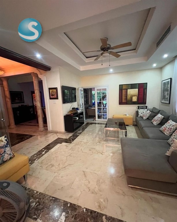 Casa en venta, proximo a la guayubin olivo, con mas de 400mts2de construccion, y hermoso patio japones, CARACTERISTICAS: - 4 Habitaciones. - 5 baños. - Piso en marmol. - Escalera caracol. - Paredes en estuco. - Techos decorados. - Madera preciosa. - Parqueo techado y destechado. - 700mts de solar. - 450mts2 de construccion. - Hermosa entrada principal CODIGO.6558