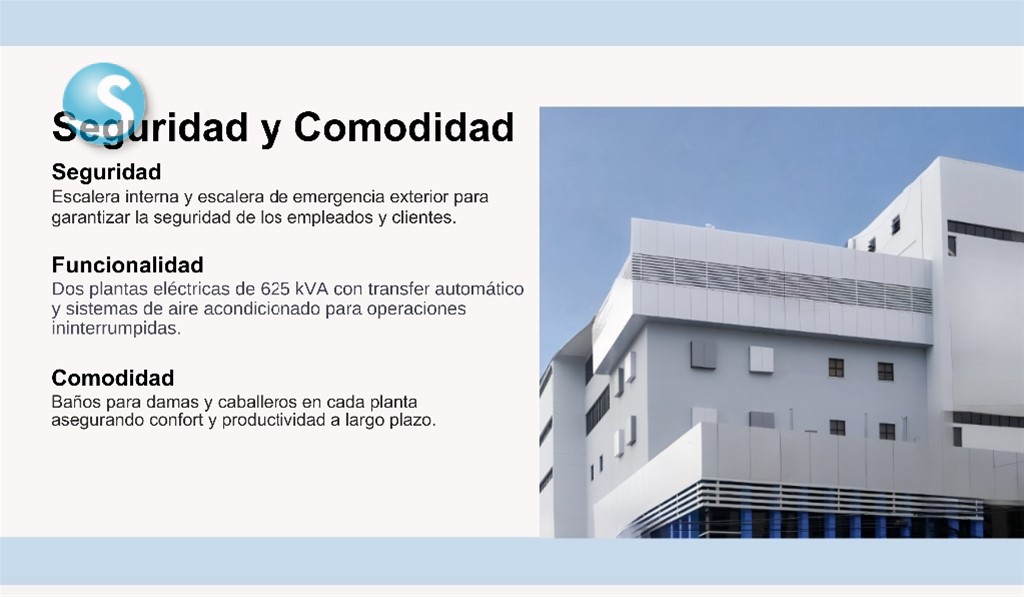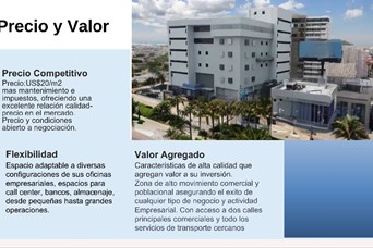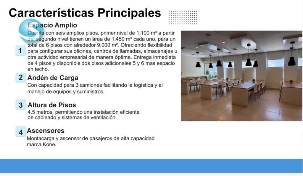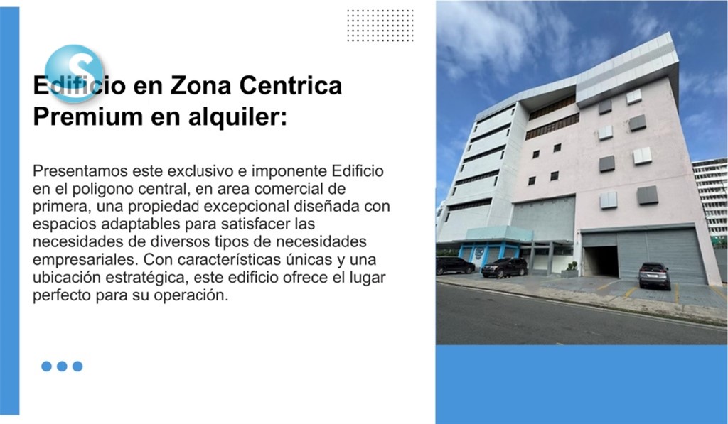 Edificio comercial premium en alquiler en el corazón del polígono central de Naco, diseñado para operaciones empresariales de alto nivel. Ubicado en una de las zonas más estratégicas de Santo Domingo, este imponente edificio ofrece amplios espacios adaptables ideales para call centers, oficinas corporativas, centros de distribución, empresas tecnológicas, clínicas o instituciones educativas. Características destacadas: • Edificio de 6 niveles • Desde 1,100 m² por piso • Hasta 1,450 m² por nivel • Altura de 4.5 metros (ideal para infraestructura tecnológica) • Andén de carga con capacidad para 3 camiones • Ascensores de pasajeros + montacarga • Baños en cada nivel • 40 parqueos disponibles Infraestructura y operación: • 2 plantas eléctricas (625 KVA) con transfer automático • Sistemas de aire acondicionado • Escalera interna + emergencia exterior • Espacios listos para operaciones de gran escala Ubicación estratégica: • Acceso por Av. Tiradentes y Calle Carlos Sánchez • Cercano a estación de metro Freddy Beras Goico • Fácil acceso a transporte público • Rodeado de plazas, restaurantes, bancos y servicios Ideal para: • Call centers (BPO) • Oficinas corporativas • Centros de distribución • Empresas logísticas • Instituciones educativas o médicas Precio: US$20/m² + mantenimiento e impuestos (Condiciones negociables)