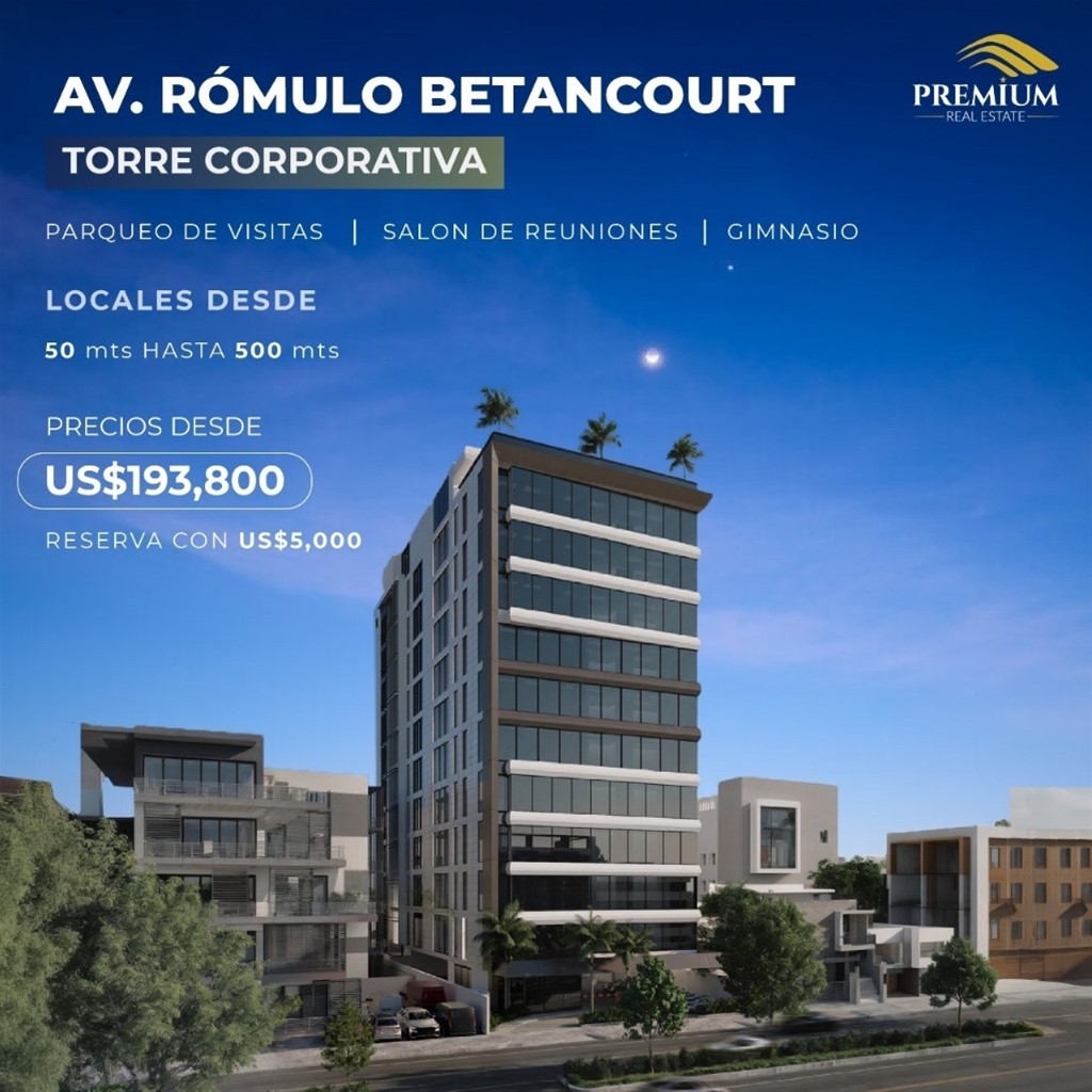 AVE. RÓMULO BETANCOURT Invierte en locales comerciales con alta proyección, ubicados en una torre diseñada para el éxito y la rentabilidad sostenida. CARACTERÍSTICAS: Locales desde 50 m2 2 parqueos por local 238 parqueos en total Parqueos de visita 3 ascensores Kitchenette en cada nivel Baños para Damas y Caballeros en cada nivel Acceso por dos calles Recepción Doble Altura Lobby amueblado y climatizado Controles de acceso Equipos de Seguridad 24 horas Comedor de empleados Estar de choferes Oficina de administración Dos salones de conferencia Salón multiusos Gimnasio Terrazas en rooftop con impresionante vista a la ciudad Vista 360 a la ciudad Desde: USD$193,800 Entrega: Sept. 2028