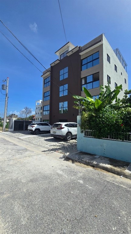 Edificio de 5 nivel, con 2 apartamentos por nivel de 2 dormitorios y 2 baños, sala, comedor, cocina y área de lavado y en wl 5to. Niveles un apartamento de un dormitorio con una amplia terraza y jacuzzi privado. Con parqueo para 4 vehículos. A 5 minutos de la playa Caleta y 10 de Multiplaza la sirena.