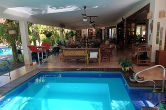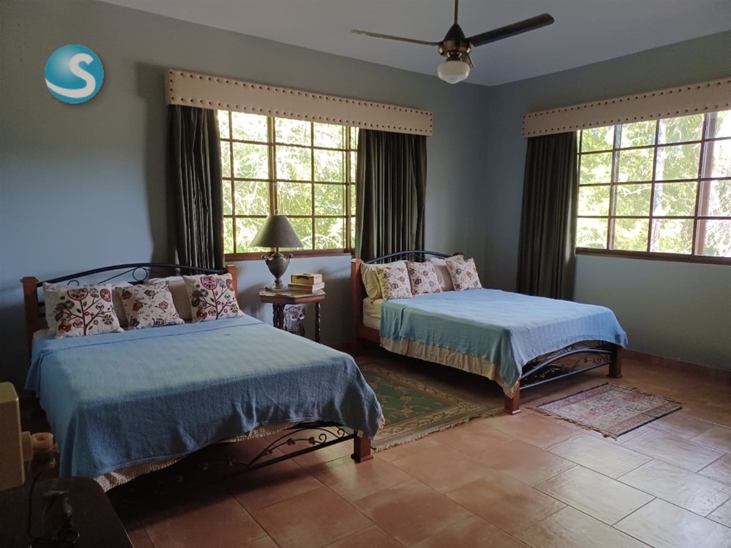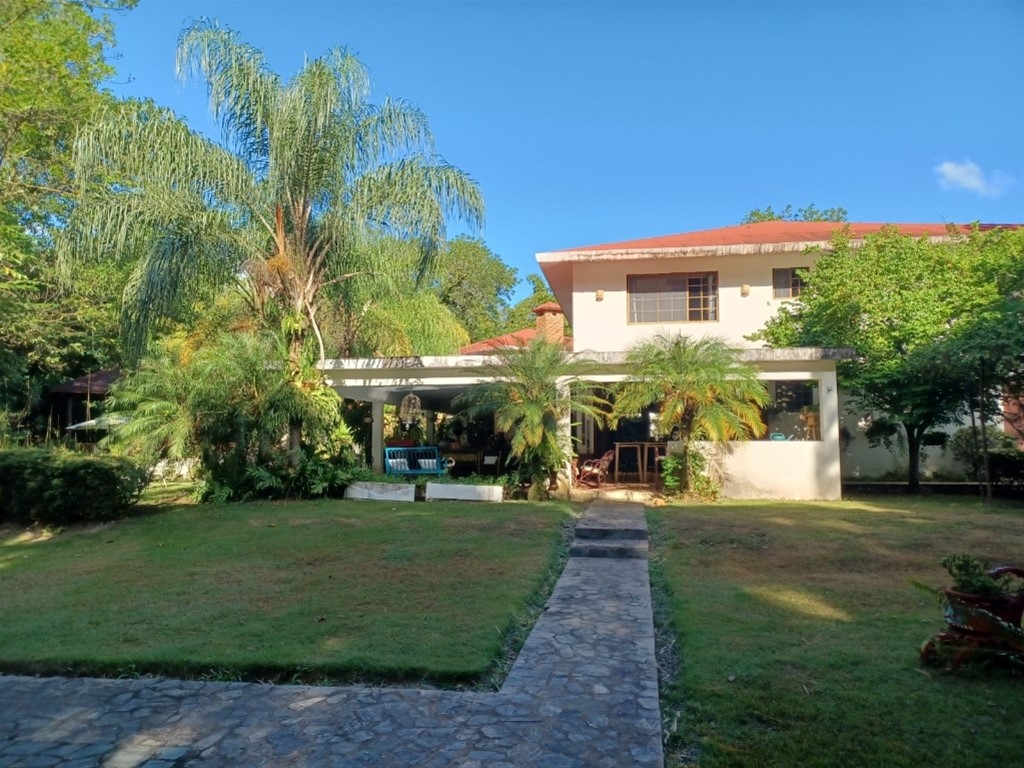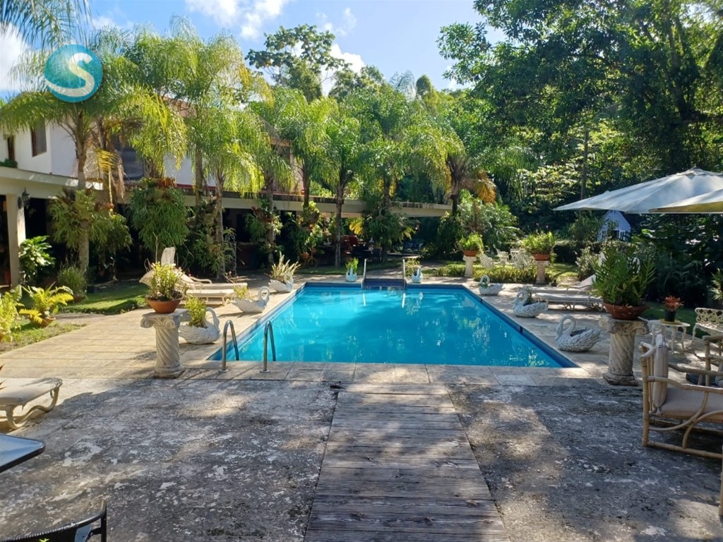 Amplia propiedad en venta con 30 tareas de terreno y casa totalmente amueblada. A la altura del kilometro 58 de la autopista Duarte. 10 habitaciones 10 baños Varias terrazas Comedor Sala estar con chimenea Terraza abierta con picuzzi Piscina Baños visitas Area con horno leña y BBQ Terreno apto para cultivos Area niños/ casita Iglesia pequeña Area choferes con 10 parqueos / Habitación para 6 personas, baño y estar Acceso al rio Areas totales: 1,455 mts 1er nivel 710 mts 2do nivel 364 mts Marquesina 153 metros Area piscina 228 Mts Precio US$ 1,800,000