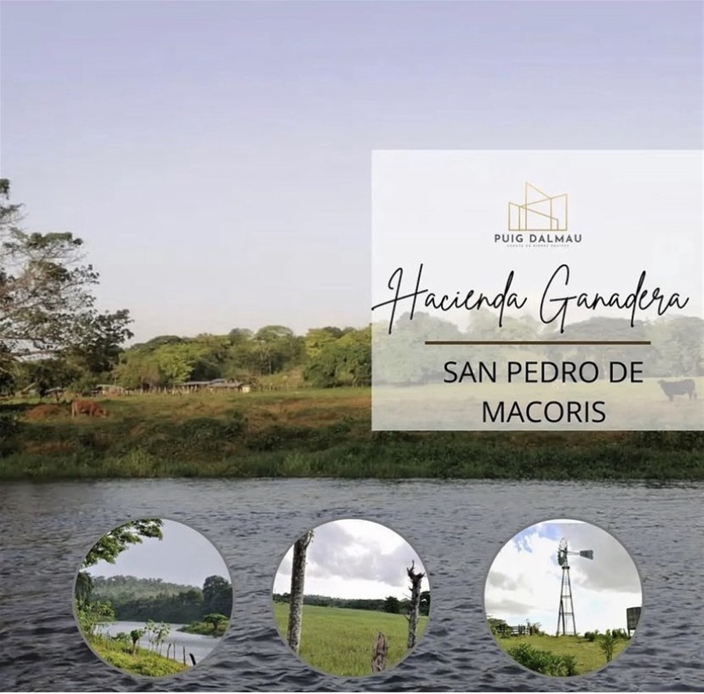 Impresionante hacienda ganadera en produccion actual en San Pedro de Macorís Esta propiedad es una joya: 2,800 tareas (1,800,000 Mts.2) 400 cabezas de ganado lechero Ordeño en producción con compradores garantizados Rodeada por más de 1 km del río Soco (iperfecto para bañarse y navegar hacia el Mar Caribe!) Molino de viento Dos Pozos tubulares Reservorio de agua en concreto con capacidad de 5,000 galones por gravedad Corral para carga, descarga y manejo ganado Potreros con árboles de caoba, cedro, naranja, limones, mangos, aguacates y más Habitaciones para 20 empleados Almacén en concreto de 150 mts.2 Área en concreto para cerdos Piletas y comederos para ganado en todos los potreros Apta para agricultura Energía eléctrica y agua ¡Una verdadera maravilla para los amantes de la naturaleza y la ganadería! Precio: US$ 2,500,000 Informacion: Reina Puig Dalmau 829-773-2266