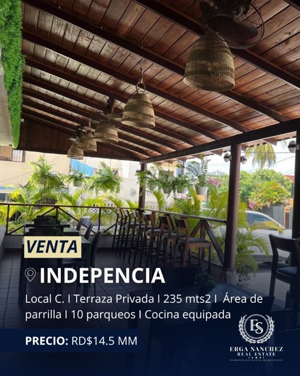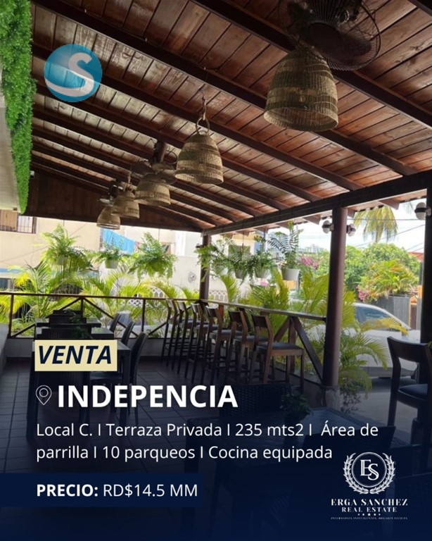 Local Comercial de 235m2 en VENTA - Ideal para cualquier concepto gastronómico ¿Buscas el espacio perfecto para tu restaurante, bar o cafetería? Este local lo tiene TODO Espacio amplio, funcional y con excelente potencial comercial CARACTERÍSTICAS Y AMENIDADES: 235 m² de construcción Amplia terraza (perfecta para clientes o eventos) Cocina equipada Área de parrilla 2 baños + baño para empleados Parqueo para hasta 10 vehículos Perfecto para: Restaurantes, sports bar, cafeterías, dark kitchen o negocios de eventos PRECIO: RD$14.5 MM (negociable) Con tasación reciente Contáctanos hoy mismo y agenda tu visita Este espacio tiene TODO para hacer crecer tu negocio #JV