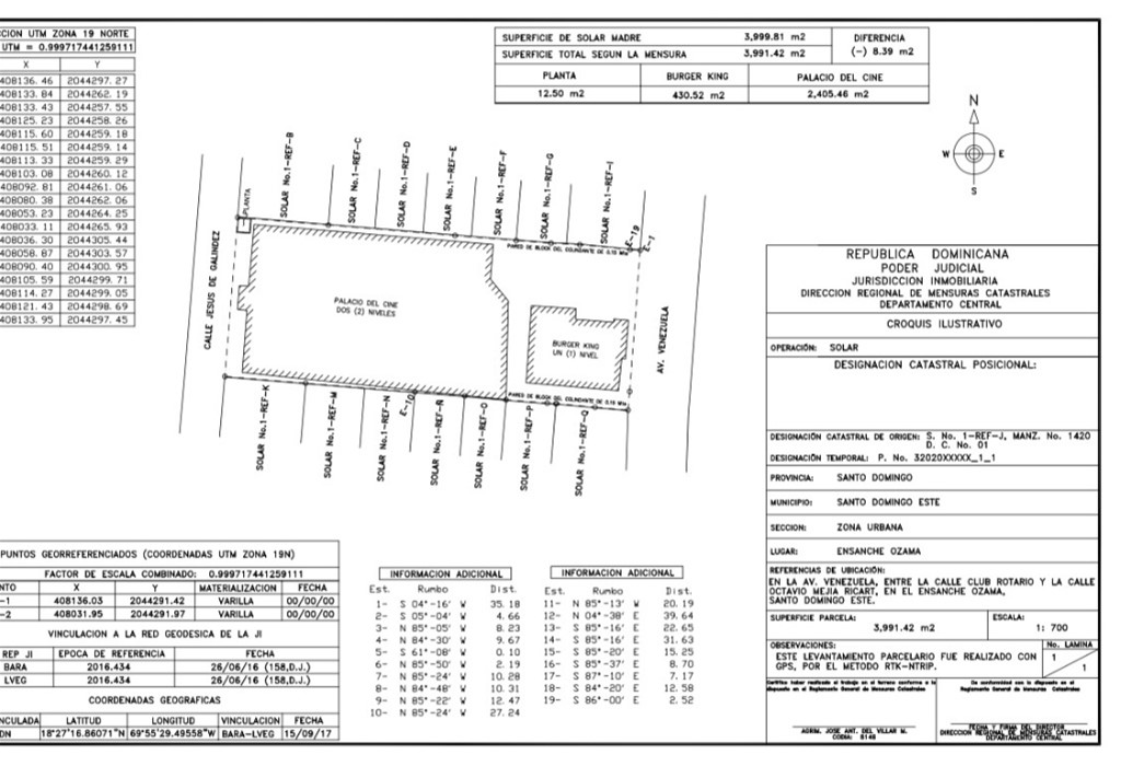 Alquiler de Local Comercial en Avenida Venezuela y Calle Jesús Galíndez, Ensanche Ozama, Santo Domingo Este Se ofrece en alquiler un amplio local comercial de tres niveles, ubicado estratégicamente en la intersección de la Avenida Venezuela y la Calle Jesús Galíndez, en el Ensanche Ozama, Santo Domingo Este. Esta ubicación privilegiada se encuentra en una zona de alto tráfico peatonal y vehicular, ideal para negocios que buscan visibilidad y accesibilidad. Características del Inmueble • Terreno: 4,000 m². • Construcción Total: 2,281.39 m² distribuidos en tres niveles. Distribución por Niveles • Primer Nivel (2,380.75 m²): • Estacionamientos Abiertos: 2,126.45 m². • Cuarto de Planta Eléctrica: 125.95 m². • Área de Escalera: 54.18 m². • Local Comercial Ocupado: 74.16 m². • Segundo Nivel (2,281.39 m²): • Área Antiguo Cine / Áreas Alquilables: 1,925.79 m². • Pasillo Frontal y Escalera: 182.69 m². • Pasillos Laterales con Techo Metálico: 158.26 m². ? • Escalera Posterior: 14.65 m². • Tercer Nivel (133 m²): • Pasillo y Escalera Posterior: 133 m². Condiciones de Alquiler • Precio de Alquiler: USD $25,000 mensuales más ITBIS. Este inmueble es ideal para supermercados, tiendas por departamentos, centros educativos, instituciones gubernamentales, entre otros negocios que requieran amplios espacios y una ubicación estratégica. Para más información o para coordinar una visita, por favor contáctenos.