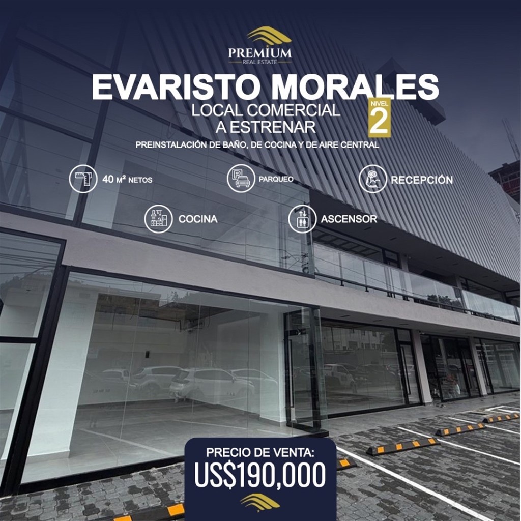 Local Comercial en venta - Evaristo Morales Plaza comercial a estrenar 40 mts 2do nivel Preinstalación de baño, de cocina y de aire central. Ascensor Parqueos acorde a disponibilidad de la plaza Baños de visitas en cada nivel Precio de venta: US$190,000