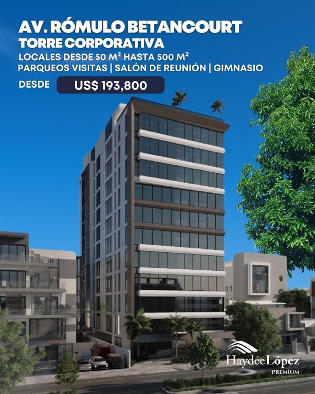 Torre Corporativa BG Center | Av. Rómulo Betancourt ¡Invierte donde tu éxito se ve! Perfecto para médicos, consultorios, oficinas profesionales y negocios premium. Locales desde 50m² con parqueos asignados Estacionamiento para visitas 3 ascensores | Acceso desde dos calles Recepción de doble altura + lobby elegante Seguridad 24/7 Kitchenette Baños en cada nivel Comedor para empleados y estar de choferes 2 salones de conferencia, salón multiusos y gimnasio Terrazas en rooftop Gimnasio Desde USD$193,800.00 Entrega: Septiembre 2028 Agenda tu cita. Haydée López Premium Real Estate (829) 875-9881