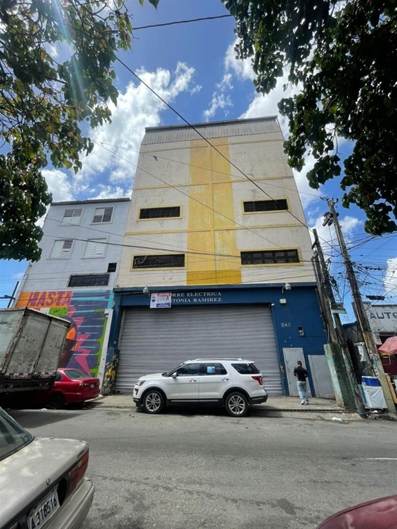 AMPLIO LOCAL COMERCIAL Consiste en una edificación comercial, de cinco niveles, orientación Norte. Terminado en pañete liso maestreado, piso en granito y cemento pulido, puertas de cristal, hierro y enrollable, ventanas de correderas y aluminio, cisterna y bomba, planta eléctrica y ascensor. Primer Nivel: Mezanine doble, almacén, área de oficinas y un baño. Segundo Nivel: Almacén, área de oficinas, y tres baños. Tercer Nivel: Almacén y cocina. Cuarto Nivel: Almacén. Quinto Nivel: Almacén y cuarto de planta eléctrica. NOTA: Esta edificación se encuentra en condiciones de abandono, necesita remodelación.