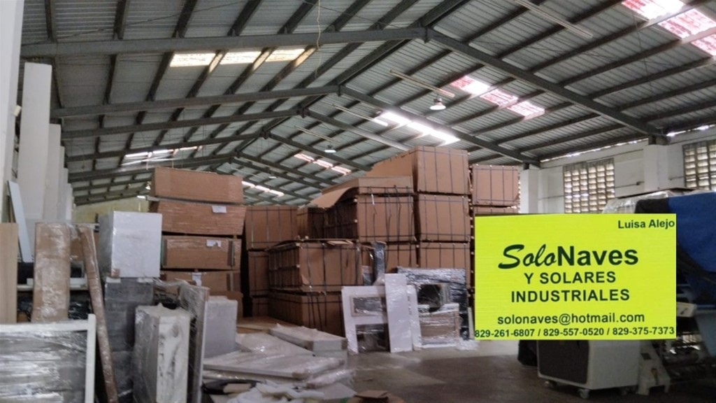 NAVE SUPER ACCESIBLE Y FUNCIONAL -Techo de aluzinc -Piso Industrial -4 Niveles -Ascensor de carga -Oficina -Baños -Baño con ducha -Parqueo -Luz trifasica -Agua -Aire acondicionado -Muebles de oficina incluidos -Todos los servicios Solonaves y Solares Luisa Alejo 829-261-6807 829-375-7373