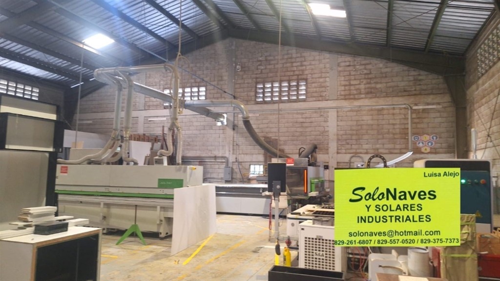 Nave facil acceso -Techo de aluzinc -Piso Industrial -Oficinas -Baños -Atracaderos -Cisterna -Verja perimetral -Porton Electrico -Paneles solares (Negociables). -Luz 24/7 -Agua -Todos los servicios Solonaves/Luisa Alejo 829-261-6807 829-375-7373