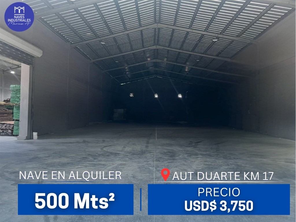 NAVE INDUSTRIAL EN ALQUILER AUT DUARTE KM 17?? **3,750 Dólares** AMENIDADES: »500 Mts² de Construcción »Fácil Acceso »Doble Altura »Oficinas »Baños »Parqueos »Atracadero »Luz Trifásica »Luz 24/7 »Todos los servicios Naves Industriales Marino A 829-838-8000