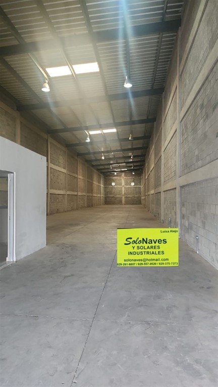 Ubicacion estrategica -Techo de aluzinc -Doble altura -Piso de Hormigon alta resistencia -Rampa -Oficina -Baño -Agua Luz 24/7 -Todos los servicios Solonaves y Solares Luisa Alejo 829-261-6807 829-375-7373