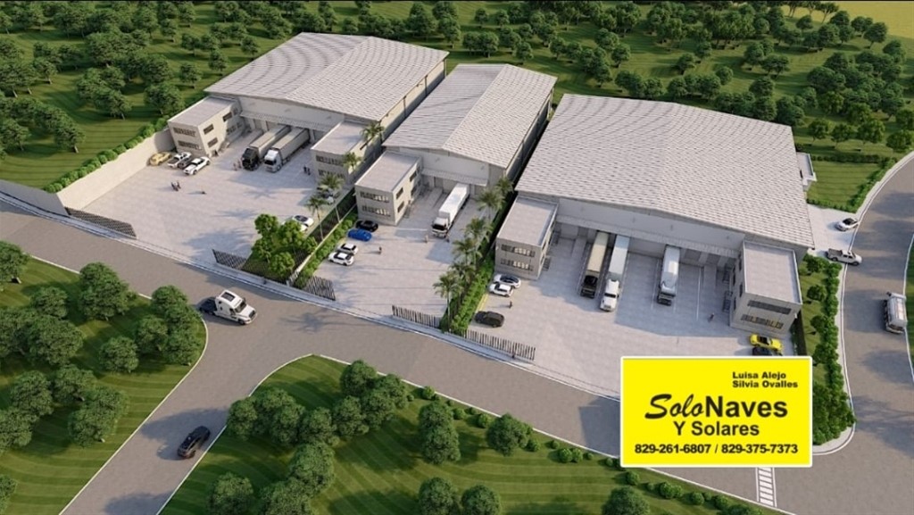 Parque industrial Facil acceso En via principal Nave 1.- 2,236 mts Nave 2.- 1,116 mts Nave 3.- 1,710 mts Descripción: • Techo de aluzinc • Piso alta resistencia • 140 mts de Oficina adicional • Baños • Agua • Seguridad • Iluminacion de areas comunes • Amplio espacio de maniobra • Todos los servicios Solonaves y Solares Luisa Alejo 829-261-6807 829-375-7373