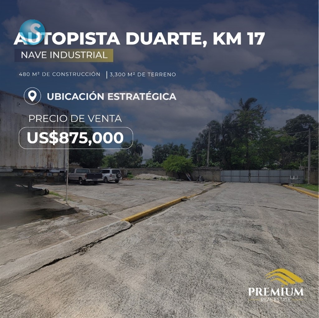 Nave Industrial en Venta – Autopista Duarte, Km 17 • 480 m² de construcción • 3,300 m² de terreno • Ubicación estratégica sobre la Autopista Duarte • Ideal para almacén, logística o centro de distribución ?? Precio de venta: US$875,000