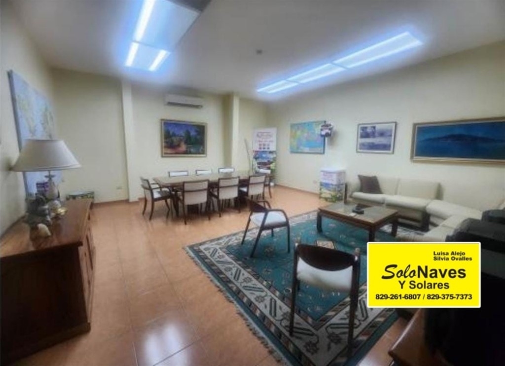 *Excelente ubicación* • Piso de Hormigón alta resistencia • Techo de aluzinc • Recepción • 8 Oficinas • Salón de conferencias • Cocina • Facturación y despacho • Cuartos fríos • Area de circulación • Almacenes • Caseta para plantas eléctricas • Enramada techada en Aluzinc • Parqueos • Baños • Agua • Luz • Todos los servicios Solonaves y Solares Luisa Alejo 829-261-6807 829-375-7373