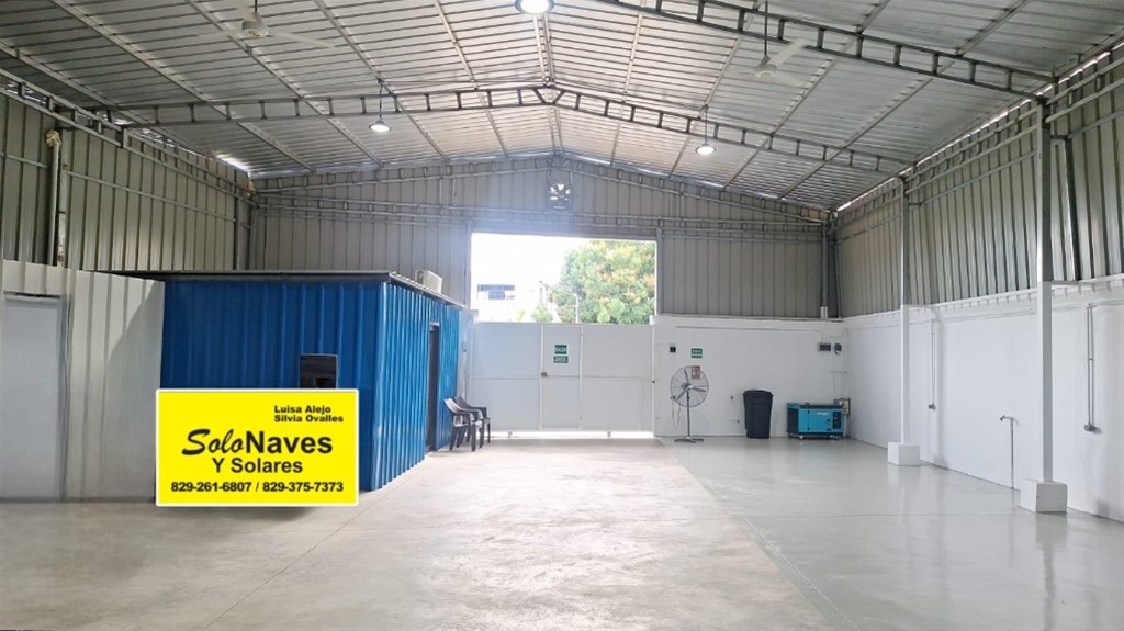 Nave nueva a estrenar Ubicada a 6 minutos de la prolongacion 27 de Febrero y 13 Minutos de Pintura o Techo de Aluzinc o Pisos de hormigón o portón eléctrico o Oficina con baño y amueblada o Planta eléctrica (Opcional). o Baño o Tinaco o Agua o Luz o Todos los servicios Solonaves y Solares Luisa Alejo 829-261-6807 829-375-7373