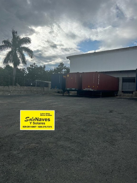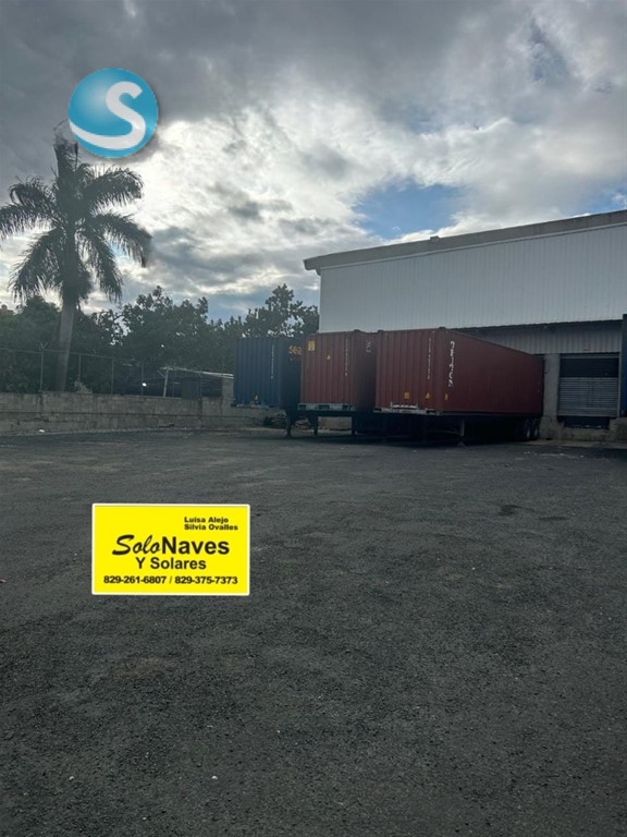 Ubicada en via principal En lugar estratégico o Techo de Hormigón armado o Piso de alta resistencia o Oficinas o Area de Carga y descarga o Verja perimetral o Parqueos o 3 Baños o 2 Garitas para seguridad o Habitación para planta electrica o Agua o Luz o Todos los servicios Solonaves y Solares Luisa Alejo 829-261-6807 829-375-7373