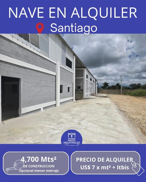 ?? Nave en Alquiler ???? ?? Ubicación Estratégica – Aut. Duarte , Santiago ?? 4,700Mts² de construcción 5 naves disponibles, se pueden dividir: 600mts² 800mts² (2) 1,000mts² 1,500mts² ? AMENIDADES: ? Vía Principal?? ? Doble altura ? 3 Oficinas ?? Kitchenette ?? Baño ?? Atracadero ? Amplios Parqueos ??? ? Verja Perímetral ?? Seguridad ? Luz y Agua 24/7 ???? ? Todos los servicios ?? ?? Precio de Alquiler: USD$ 7 x mt² + Itbis (Mantenimiento incluido) ?? Otras opciones similares en la zona con diversos metrajes y precios. ?? Naves Industriales MarinoA. ?? 829-838-8000 ?? Líderes en Alquiler y Venta de Naves y Solares Industriales en toda República Dominicana.