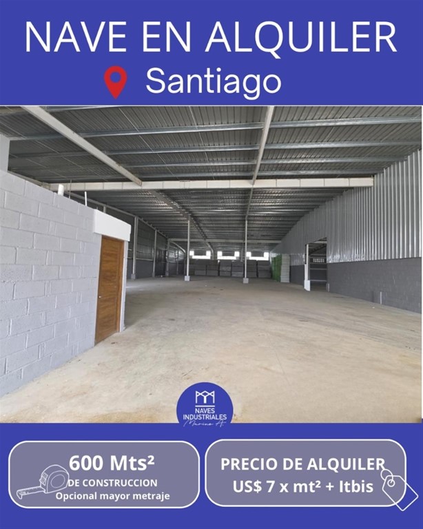 ?? Nave en Alquiler ???? ?? Ubicación Estratégica – Aut. Duarte , Santiago ?? 600 Mts² de construcción (5 naves disponibles, se pueden unir) ? AMENIDADES: ? Vía Principal?? ? Doble altura ? 3 Oficinas ?? Kitchenette ?? Baño ?? Atracadero ? Amplios Parqueos ??? ? Verja Perímetral ?? Seguridad ? Luz y Agua 24/7 ???? ? Todos los servicios ?? ?? Precio de Alquiler: USD$ 7 x mt² + Itbis (Mantenimiento incluido) ?? Otras opciones similares en la zona con diversos metrajes y precios. ?? Naves Industriales MarinoA. ?? 829-838-8000 ?? Líderes en Alquiler y Venta de Naves y Solares Industriales en toda República Dominicana.