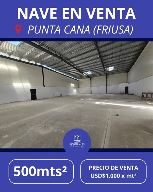 TU MEJOR INVERSIÓN ?? Nave en Venta???? ?? Ubicación Estratégica – Punta Cana, Friusa ?? 500mts² ?? Precio de Venta: USD$1,000 x mt² ? AMENIDADES: ? Excelente acceso?? ? Imagen Comercial e Industrial ?? Doble Altura ?? Baños ?? ? Verja Perímetral ? Parqueos ? Luz y Agua 24/7 ???? ? Todos los servicios ?? ?? Otras opciones similares en la zona con diversos metrajes y precios. ?? Naves Industriales MarinoA. ?? 829-838-8000 ?? Tenemos 13 años en el ámbito comercial e industrial. ?? Contamos con una gran variedad de naves y solares de diferentes tamaños, precios y ubicaciones.