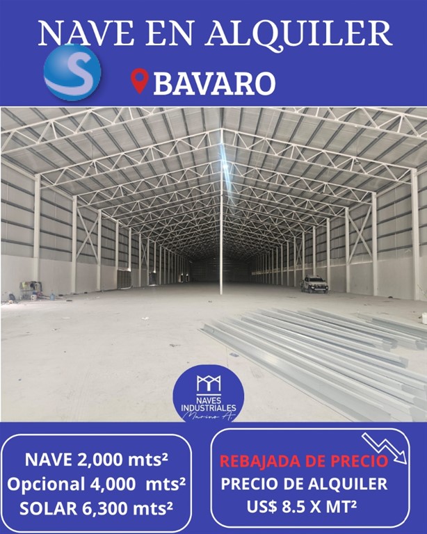 NAVE INDUSTRIAL EN ALQUILER (OPCIONAL VENTA) PUNTA CANA Ubicación Premium: A solo 100?mts de la Autovía Berón – Boulevard Turístico del Este. 4,000mts² bajo techo (incluye oficinas) *Opcional menor metraje 2,000mts²* Solar de 6,300 mts² Precio de Alquiler: USD$9.90 x mt² Precio de venta: USD$ 3,990.000 AMENIDADES DESTACADAS: Nave independiente – NO es condominio Altura y acceso para contenedores 4 portones automáticos con rampas de carga 1 portón posterior con rampa de concreto Más de 20 parqueos disponibles Garita de seguridad y verja perimetral Pisos industriales según normas internacionales Cisterna 15,000 gls + sistema contra incendios de 60,000 gls Iluminación interior y exterior Oficinas con 3 aires acondicionados 4 baños, 2 almacenes internos Wi-Fi conectado Sistema de cámaras de seguridad instalado Protección para-rayos Paneles sándwich europeos (ISP) en techo y perímetro Contáctanos hoy mismo: 829-838-8000 Con más de 13 años de experiencia en el sector industrial. Contamos con múltiples opciones en Punta Cana y zonas cercanas.