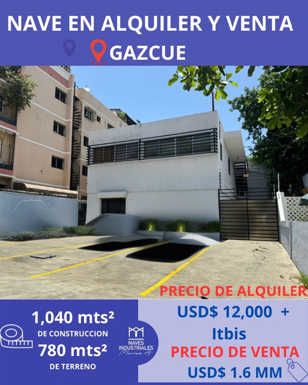 Nave en Alquiler y Venta Ubicación – Gazcue 780mts² de Terreno 1,040 Mts² de construcción AMENIDADES: Vía Principal Imagen Comercial e Industrial 2 Niveles 340 Mts² de Oficinas amuebladas Aires acondicionados Planta Eléctrica Paneles Solares Ascensor de Carga Parqueos Área de Carga y Descarga Luz y Agua 24/7 Todos los servicios Precio de Alquiler: USD$ 12,000 + Itbis Precio de Venta USD$ 1.6 MM Otras opciones similares en la zona con diversos metrajes y precios. Naves Industriales MarinoA. 829-838-8000 Líderes en Alquiler y Venta de Naves y Solares Industriales en toda República Dominicana.