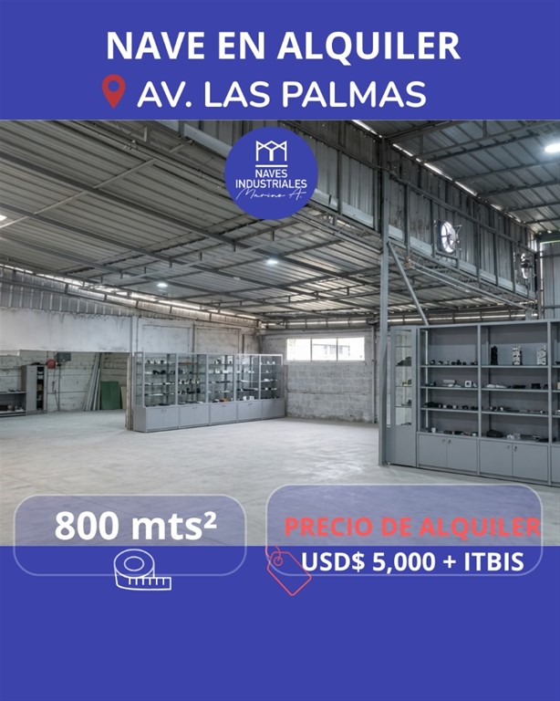 Naves en Alquiler Ubicación Estratégica – Las Palmas de Herrera 800 Mts² Ideal para Almacenamiento y logística, Producción, Talleres, Comercio o Showroom, etc. Precio de Alquiler: USD$ 5,000 + Itbis AMENIDADES: Vía Principal Imagen Comercial e Industrial Doble altura Baños Oficinas Parqueos Verja Perímetral Área de Carga y Descarga Luz y Agua 24/7 Todos los servicios Otras opciones similares en la zona con diversos metrajes y precios. Naves Industriales MarinoA. 829-838-8000 Líderes en Alquiler y Venta de Naves y Solares Industriales en toda República Dominicana.