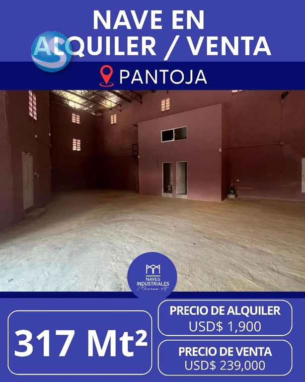 Nave Industrial en Pantoja – Venta y Alquiler 317 m² de construcción, ideal para tu empresa o almacén. Ubicada en zona de fácil acceso, con excelente entorno industrial. Precio de Alquiler: USD$1,900 Precio de Venta: USD$239,000 Características y Amenidades: Doble altura Oficinas en segundo nivel Baños Parqueos disponibles Luz y agua 24/7 Todos los servicios Contáctanos para más información: 829-838-8000 Naves Industriales MarinoA Contamos con otras opciones disponibles en la misma zona.