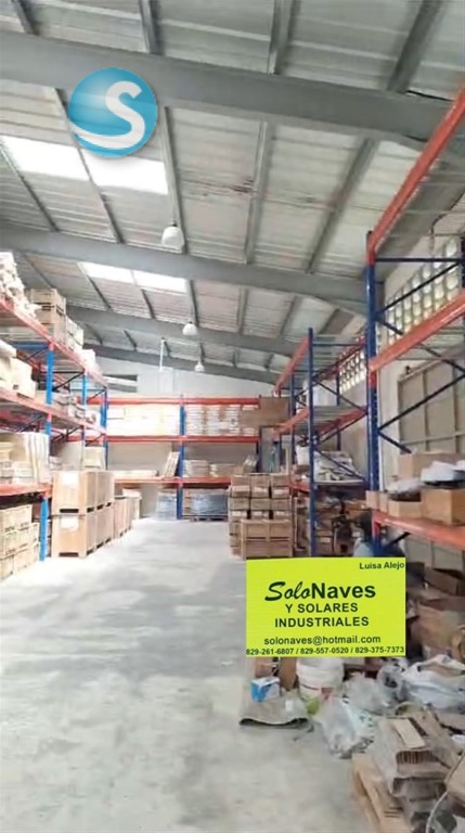 Excelente ubicacion Facil acceso -Techo de aluzinc -Traga luz en el techo -Piso de alta resistencia -Oficina -Parqueos -Baños -Verja perimetral -Porton de seguridad -1 Rampa para contenedores -1 Rampa para Montacargas -Agua -Luz -Todos los servicios Solonaves y Solares Luisa Alejo 829-261-6807 829-375-7373