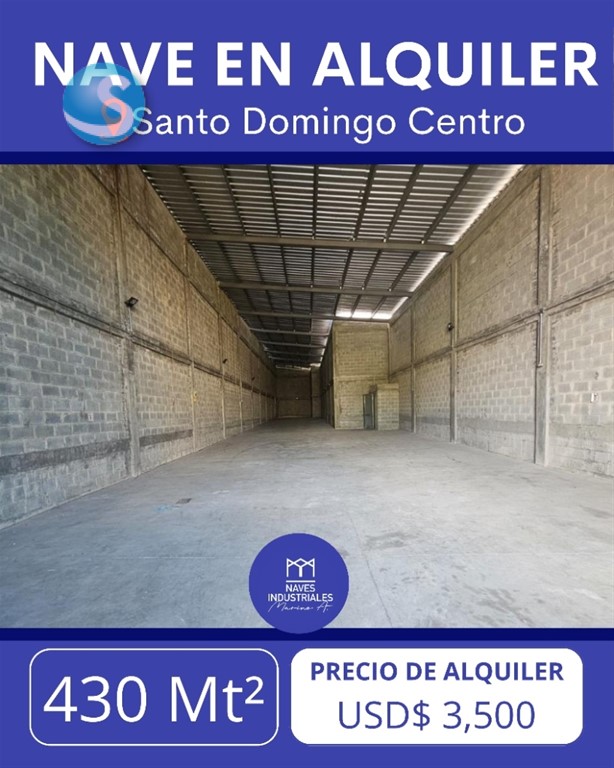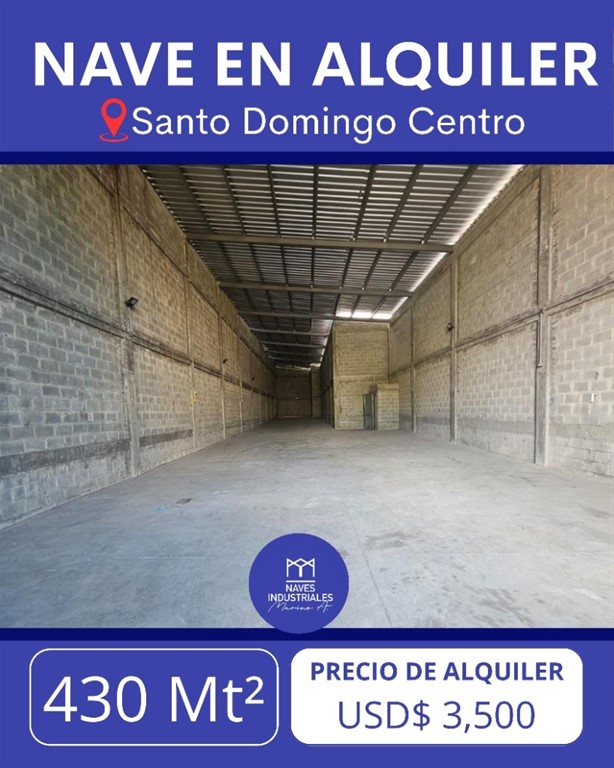 NAVE EN ALQUILER Santo Domingo Centro 430 Mts² de Construcción *Precio de Alquiler: 3,500 Dólares* AMENIDADES: »Excelente Acceso »Doble Altura »Baño »Parqueos »Todos los servicios Esta y otras opciones disponibles en la misma zona. Naves industriales MarinoA. 829-838-8000 Tenemos 13 años en el ámbito comercial e Industrial contamos con una gran variedad de naves y solares de diversos tamaños precios y ubicaciones