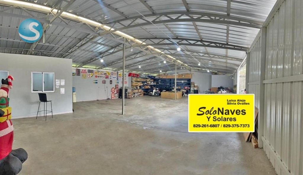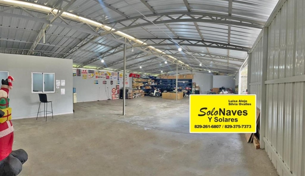 Excelente ubicacion Facil acceso 1.-Nave de 230 mts 2.- Local de 330 mts Características: - 1 baño moderno - Nave moderna piso concreto y techo en aluzinc - 1 espacio para oficinas - Preinstalación de aire acondicionado - Preinstalación de inversor - Tinaco - Bomba de agua - Cisterna - Locker room - Entrada amplia para acceso de furgones o parqueos. Nota: Disponible planta eléctrica para ser compartida con otro local. Solonaves y Solares Luisa Alejo 829-261-6807 829-375-7373