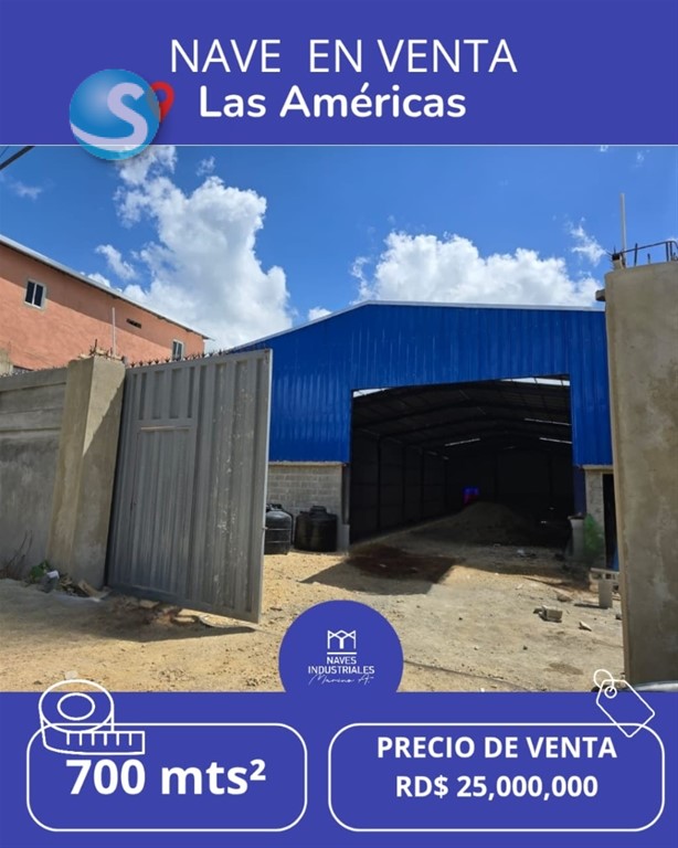 NAVE EN ALQUILER Y VENTA ?? Ubicación estratégica: Las Américas, proximo al Peaje ?? Metraje disponible: 1,000mts² de terreno 700 mts² de construcción ??Documentación al día. ??Doble Altura ? Excelente acceso ??? Verja Perímetral ?? Oficina ?? Baños ??Parqueos ????? Garita de seguridad ? Luz 24/7 en la zona ? Abundancia de agua ? Todos los servicios disponibles Naves industriales MarinoA. 829-838-8000 ?? Líderes en Alquiler y Venta de Naves y Solares Industriales en toda República Dominicana.