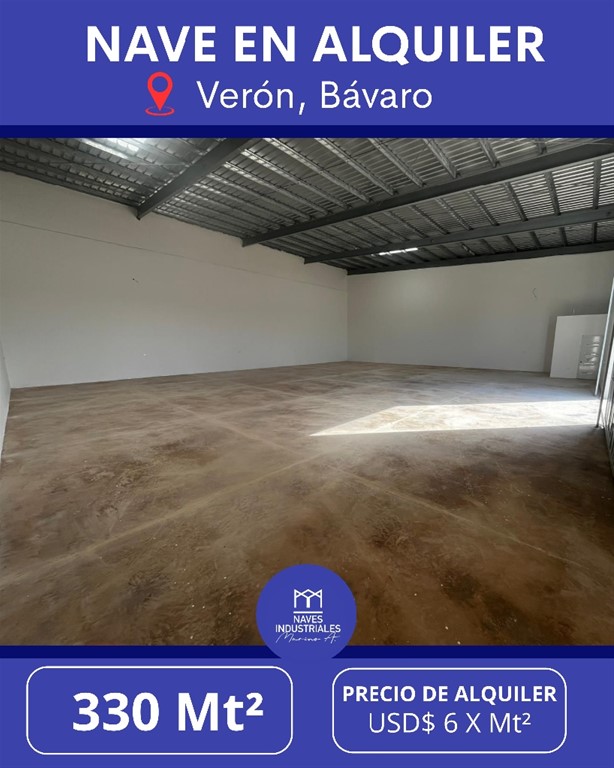 Nave en Alquiler Verón, Bávaro Precio de Alquiler: USD$6 x Mt² * 330 Mts² de construcción. AMENIDADES: ** Excelente acceso ** Conjunto de Naves ** Atracadero común ** Oficinas ** Baño ** Amplios Parqueos ** Luz y Agua 24/7 ** Seguridad ** Todos los servicios Otras opciones similares en la zona diversos metrajes y Precios. Naves industriales MarinoA. 829-838-8000 Tenemos 13 años en el ámbito comercial e Industrial contamos con una gran variedad de naves y solares de diversos tamaños precios y ubicaciones