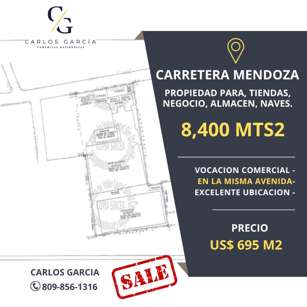 Terreno, Solar, Negocio, Tienda, Naves, Carretera Mendoza, Santo Domingo Este. ¿Buscas el punto comercial perfecto para tu tienda, nave industrial o negocio en crecimiento? Esta propiedad reúne todo lo que necesitas: ubicación estratégica, amplitud, parqueos y áreas listas para operar. Características destacadas: • 8,400 m² de terreno con gran potencial comercial. • Dos naves industriales ideales para almacenamiento o fabricación. • Amplia tienda de dos niveles lista para exhibición y ventas. • Áreas de oficinas modernas para administración. • Comedor espacioso para empleados. • Parqueos disponibles para clientes y personal. Esta propiedad es la opción perfecta si buscas un solar con naves industriales, un terreno para inversión comercial, o un espacio ideal para tu tienda, almacén o fábrica. Inversión estratégica en una zona de alto crecimiento, ideal para negocios que requieren visibilidad, espacio y fácil acceso.