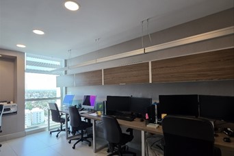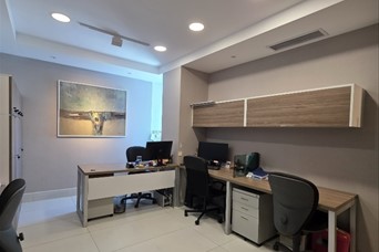 Oficina Amueblada en Renta – Torre Fórum, Piso 14 Precio: USD 13,100 mensuales Características del espacio: Metraje: 209 m² Nivel: Piso 14 Parqueos: 8 Aire acondicionado: Central Distribución: 4 oficinas privadas 2 oficinas adicionales Salón de reuniones y conferencias Recepción y área de espera Cocina 2 baños comunes 2 baños privados Incluye: computadoras, impresoras y todo el mobiliario mostrado en las fotografías (excepto los cuadros decorativos). La renta es completamente amueblada y lista para ocupar. Características de la torre: 16 niveles Acceso para personas con discapacidad 325 parqueos techados y de visitas Sistema de vigilancia con circuito cerrado Seguridad y portero las 24 horas 3 plantas eléctricas Lobby de recepción Escaleras de emergencia 3 elevadores Baños en cada piso Servicios de mantenimiento