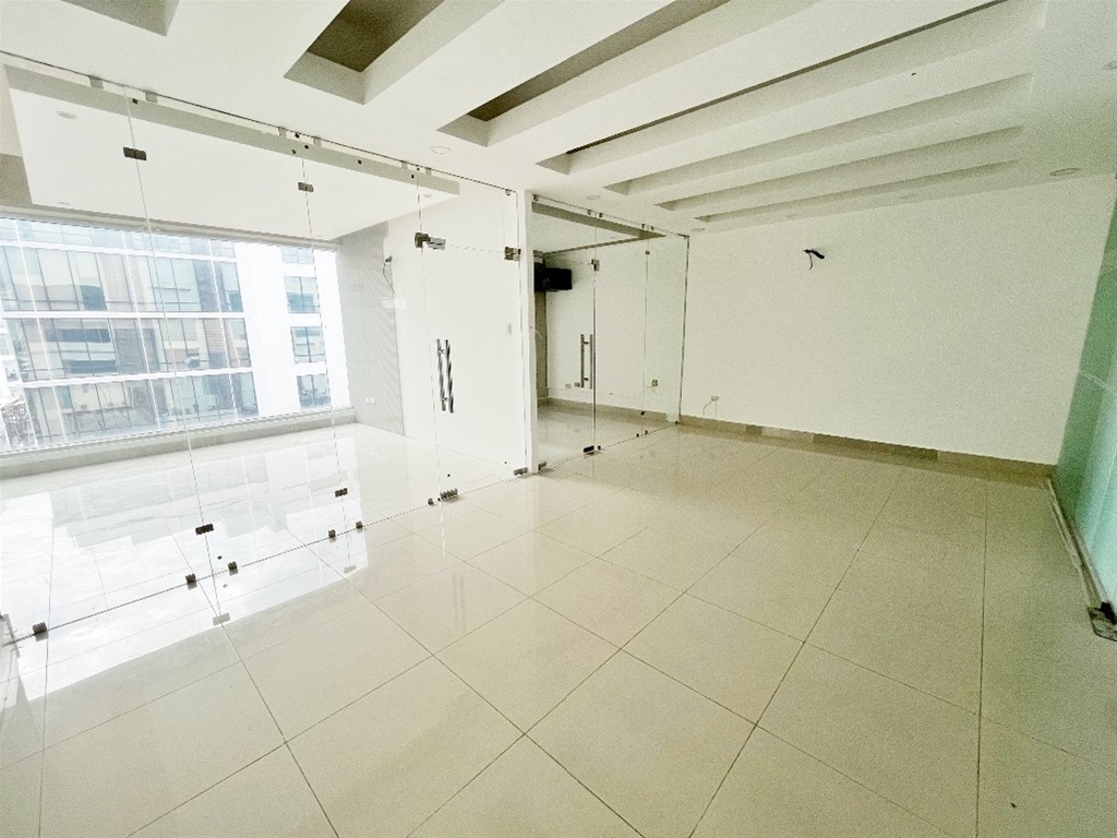 Características -85 mt2 en el 8vo piso -Local para oficinas -Pre instalacion de aires -Pre instalacion sanitaria -1 parqueo asignado -2 ascensores -Lobby amueblado y climatizado -Parqueos para clientes -Terraza común en el 5to piso -Planta eléctrica full -Segurida 24/7 Precio de alquiler: US$ 2,200 (mant. incluido)