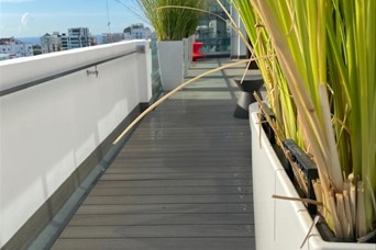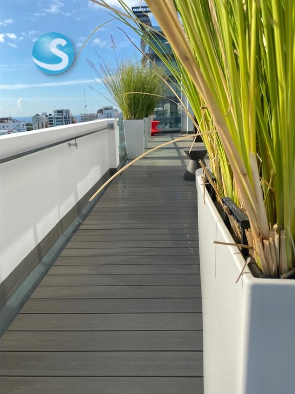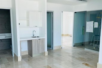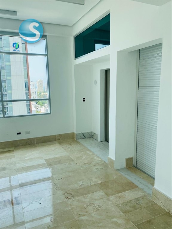 Local de Oficinas en Alquiler – Torre Empresarial KM Disponible y listo para ocupar, local corporativo ubicado en el 8vo nivel (último piso) de la Torre Empresarial KM, estratégicamente situada en el centro de la ciudad de Santo Domingo, sobre la Avenida 27 de Febrero, próximo a la Avenida Winston Churchill. El proyecto cuenta con doble acceso vehicular por la Avenida 27 de Febrero y la Calle Buen Pastor, facilitando la movilidad y el acceso a sus colaboradores y clientes. El precio de alquiler es de US$34.50M2/Mes + Itbis + US$3.90/M2/Mes correspondiente al pago mensual del mantenimiento de las áreas comunes del edificio. Características del Local • Área neta aproximada: 142 m² • Ubicado en el último nivel del edificio • Acceso directo desde el ascensor, brindando mayor privacidad, seguridad y control • Impresionante vista panorámica al mar y a la ciudad • Fachada tipo muro cortina en cristal • Vista frontal hacia la Av. 27 de Febrero • Terraza exterior Distribución Interna • Recepción • Salón de conferencias • Área de trabajo abierta • Oficina principal • Oficina secundaria • Medio baño • Kitchenette • Terraza exterior (delimitada hasta la puerta de cristal de acceso) Terminaciones e Instalaciones • Pisos en mármol Crema Marfil • Unidades de aire acondicionado con ductería instalada • Divisiones y puertas internas en cristal • Instalaciones eléctricas y luminarias • Instalaciones sanitarias completas Parqueos • (2) parqueos techados incluidos • (1) parqueo exterior destechado disponible (opcional) Precio de Alquiler: • US$34.50 por m² / mes • US$3.90 por m² / mes (mantenimiento áreas comunes) • ITBIS no incluido Características Generales del Edificio • Diseño arquitectónico contemporáneo (fachada frontal en cristales flotantes y panel composite de aluminio – Alucobond) • Diseño estructural en pórticos y losas de hormigón armado conforme al reglamento sísmico aprobado por el Ministerio de Obras Públicas y Comunicaciones (2011) • Nueve (9) niveles totales, incluyendo dos (2) niveles de estacionamientos • Altura entre pisos de 3.90 metros • Lobby de doble altura, climatizado, amueblado y con diseño interior contemporáneo • Ascensor panorámico Mitsubishi de última generación con capacidad para 11 pasajeros • Pisos de mármol en lobby y pasillos de áreas comunes • Puertas flotantes en entrada de cada oficina • Dos (2) baños de visitas por nivel (damas y caballeros) con diseño contemporáneo • Terminaciones de alta calidad Áreas y Facilidades Complementarias: • Salón Multiusos (kitchenette y baño) para empleados y choferes • Iluminación natural en áreas comunes • Baños de conserjería en el primer nivel • Parqueo exclusivo para motores • Parqueos para visitantes • Ducto para desperdicios Infraestructura Técnica: • Sistema de columnas para instalaciones sanitarias y kitchenette por local • Área destinada para equipos de aire acondicionado por nivel • Área
