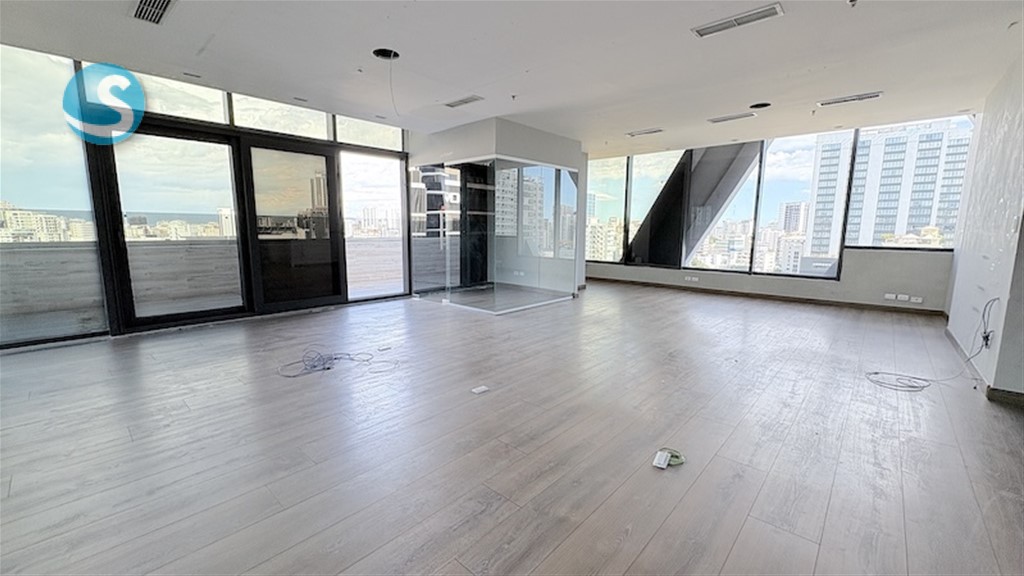 CARACTERISTICAS: Torre Empresarial solo para oficina. NO Call Center. ? Lobby climatizado con control de acceso y vigilancia 24 horas ? Tres (3) elevadores ? Comedor de empleados ? Salón de Conferencia común ? Baños comunes de damas y caballeros ? Gimnasio común ? Salón para actividades corporativas ? Generadores eléctricos ? Parqueos techados ? Escaleras de emergencia CARACTERISTICAS DEL LOCAL ? Recepción ? Salón abierto para estaciones de trabajo ? 4 oficinas cerradas ? Salón de Conferencia u oficina gerencial ? Baño y Cocina propia ? Terraza Propia para actividades corporativas ? Piso alto con vista ? 203 m2 de oficinas + 44 m2 de terraza + parqueos + locker . ? 9 parqueos propios ? Pisos en madera ? Divisiones en cristales ? Grandes ventanales ? Aire opcional acondicionado opcional ? Luminarias PRECIO: US$7,000 + mant de US$1,399.44 + itbis ID: EB-VO6635 Para mas informacion visite nuestra pagina web: https://www.hazimrodriguez.com/property/oficina-corporativa-con-terraza-para-actividades-en-serralles?agent=AnaM1 Instagram: https://www.instagram.com/inmobiliariahazimrodriguez/