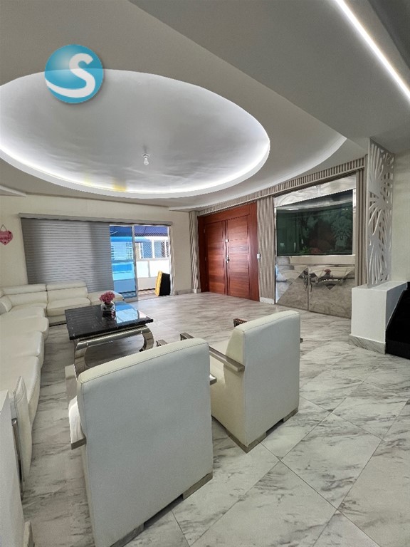 Penthouse con acceso privado ubicado en una torre de Alma Rosa I. Características: * 490 Mts Distribución: 1er nivel * Sala * Balcón * Baño de visitas * Cocina fría * Cocina caliente * Área de lavado * 2 habitaciones con baño y walking clóset * Espacio para perfumes * Pecera 2do nivel * Acceso por Ascensor del PH * Área social privada * Piscina * Family Room * 1 baño * Área de nevera * Bar * Salida de emergencia 3er nivel * Acceso por Ascensor del PH * 1 habitación con vista panorámica * 1 Baño (Lavamanos y ducha doble) * Cocina * Family Room * Terraza privada destechada * Área de tecnología/depósito eléctrico * Salida de emergencia Terminaciones * Sheetrock * Paneles * Madera preciosa Características generales: * Ascensor * Sala de espera en el nivel de Penthouse * Escalera de emergencia * 3 Parqueos lineales * Gimnasio * Área de juegos * Seguridad 24/7 * Parqueos techados * Portón eléctrico * Recibidor * Locker * Gas común * Planta eléctrica Precio de venta: USD$325,000.00