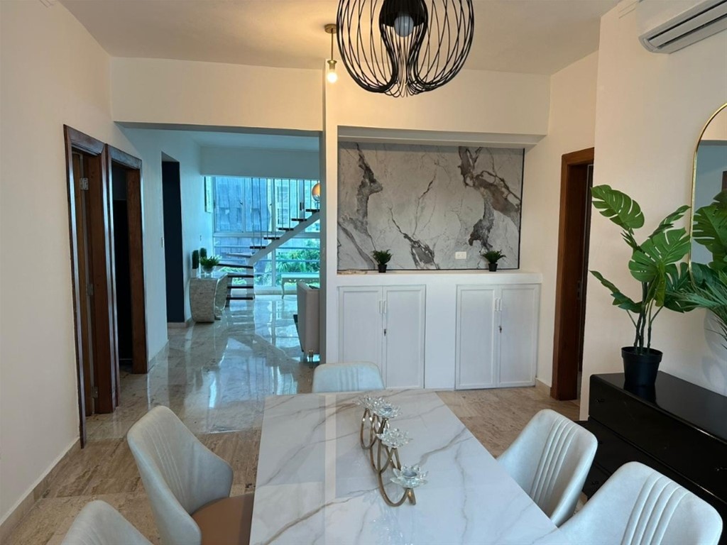 Penthouse de Lujo en Piantini con Terraza, Jacuzzi Privado, Sauna Tipo Spa y Locker Privado Ubicación: - Situado en Piantini, Santo Domingo, la zona más exclusiva, céntrica y segura de la ciudad. Descripción General: Este impresionante penthouse de 270 m² y dos niveles combina lujo, comodidad y seguridad en cada detalle. Totalmente amueblado y decorado con un estilo moderno, ofrece la oportunidad perfecta para vivir en un ambiente sofisticado y relajado. Precio de Alquiler: $3,500 mensuales. Características Principales: - Tres amplias habitaciones, cada una con su baño privado. - Cinco baños en total, incluyendo baño de visitas y baño en la terraza junto al jacuzzi. - Terraza privada con jacuzzi/piscina, área PQZ para hasta 10 personas, y baño completo. - Sauna de mármol en el segundo piso, proporcionando una experiencia tipo spa en casa. - Sala de cine/estudio con proyector y sistema de sonido envolvente. - Dos salas de estar y una zona de bar ideal para el entretenimiento. - Cuarto de servicio con baño, adyacente a la cocina. - Locker privado para almacenamiento adicional. Distribución del Espacio: - Primera Planta: - Dos dormitorios, cada uno con baño privado. - Sala de estar y comedor. - Cocina completamente equipada. - Cuarto de servicio con baño. - Segunda Planta: - Habitación principal con baño privado. - Estudio/Sala de cine con proyector y sonido. - Sala de estar adicional y área de bar. - Acceso a la terraza privada con jacuzzi y área social. - Baño con sauna de mármol. Comodidades y Seguridad del Edificio: - Seguridad 24 horas, incluyendo cámaras de vigilancia alrededor del edificio y acceso controlado. - Generador 24 horas, garantizando suministro eléctrico continuo. - Garaje cerrado y con acceso remoto, para mayor comodidad y seguridad. - Cámaras de vigilancia 24/7 en el apartamento (desactivables si se desea). - Salida de emergencia con acceso directo al techo y a la planta baja. - Locker privado para almacenamiento seguro y adicional. Detalles Adicionales: - Amueblado completamente con muebles y decoración moderna. - Dos niveles, proporcionando una distribución eficiente y espacios bien aprovechados. - Área de terraza con vistas panorámicas de la ciudad. Este penthouse en Piantini está diseñado para aquellos que buscan lo mejor en términos de lujo, comodidad y seguridad, en el área más privilegiada de Santo Domingo. ¡No pierdas la oportunidad de vivir en un lugar único y lleno de detalles pensados para tu bienestar! Información y Ventas: Laura Scheker Associate Broker Páez international Real Estate Cel: 829-874-1550