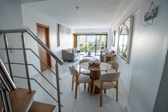 Penthouse en alquiler amueblado con Terraza y Jacuzzi privado, Zona Universitaria!! Apartamento nuevo a estrenar. Pisos 7 y 8. Primer nivel: * Balcón con vista al Mar * Sala * Comedor * Cocina * 2 habitaciones con sus baños. * Área de lavado * Cuarto de servicio Segundo nivel: * 1 habitación con baño y WC * Family * Terraza privada con jacuzzi, vista al mar. * Baño de visitas Cuenta con 228 metros y dos cómodos parqueos paralelos. Amenidades: * 2 ascensores * Jacuzzi * Gimnasio * Lobby climatizado con sala de espera * Planta full * Terraza amueblada * Área BBQ * Gas común Precio US$2,500 (Mantenimiento Incluido)