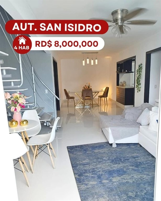 ??Amplio y ventilado PENTHOUSE de 168.85 Mt2, EN VENTA EN LA AUT. DE SAN ISIDRO, Residencial cerrado con Acceso controlado, a pocos minutos de centros comerciales, clínicas y hospitales, centros educativos Y Entidades Bancarias. DESCRIPCION: 1er Nivel * 3 Habitaciones principal con Walking Closet y Baño * 2 Baños * Recibidor * Sala * Cocina * Comedor * Balcón * Área de Lavado * 1 Parqueo 2do Nivel: * 1 Habitación con su baño * Terraza techada AMENIDADES: * Gazebo * Área de Gimnasio * Seguridad 24 horas * Parqueo para Visitas Mantenimiento RD$ 3,000