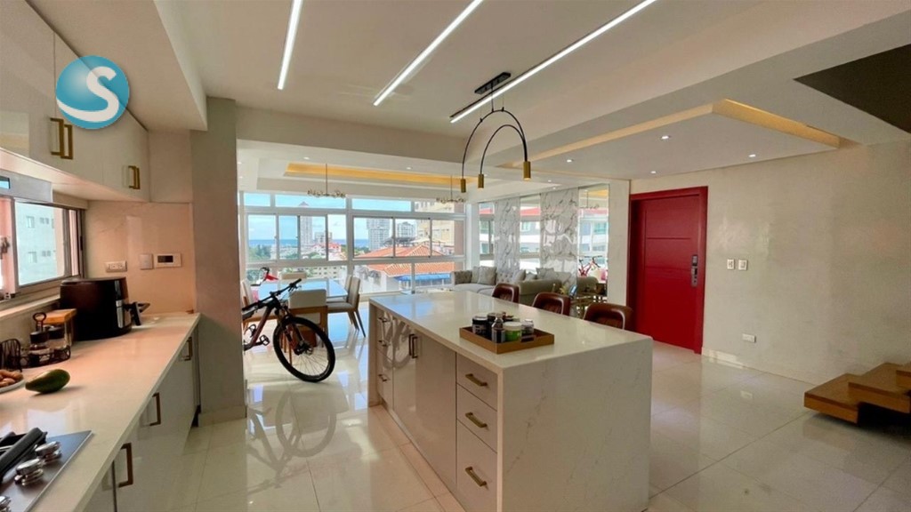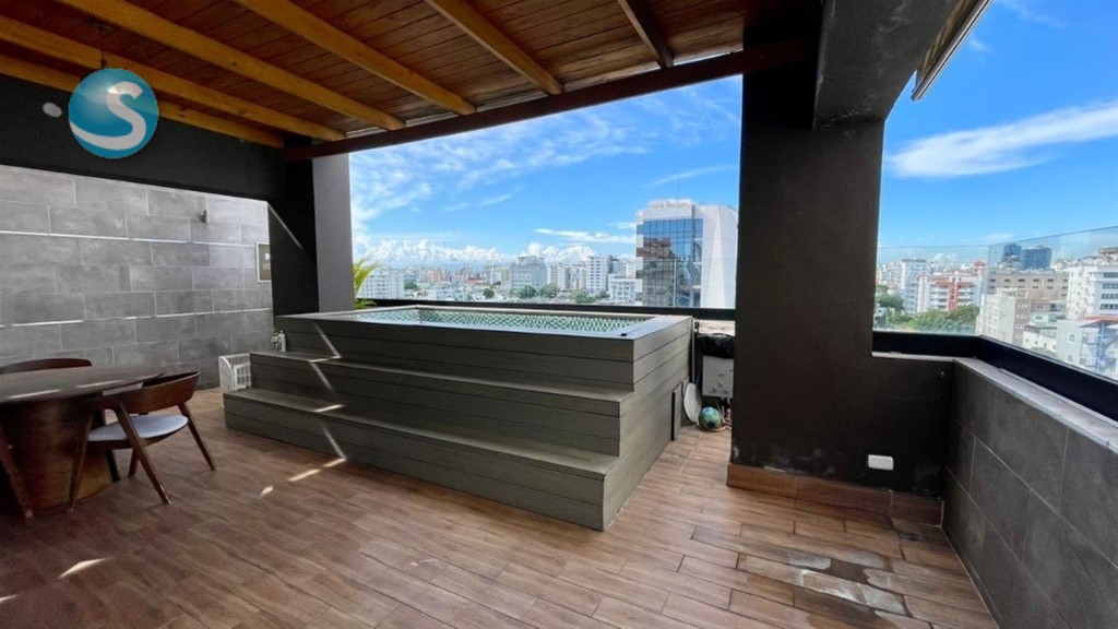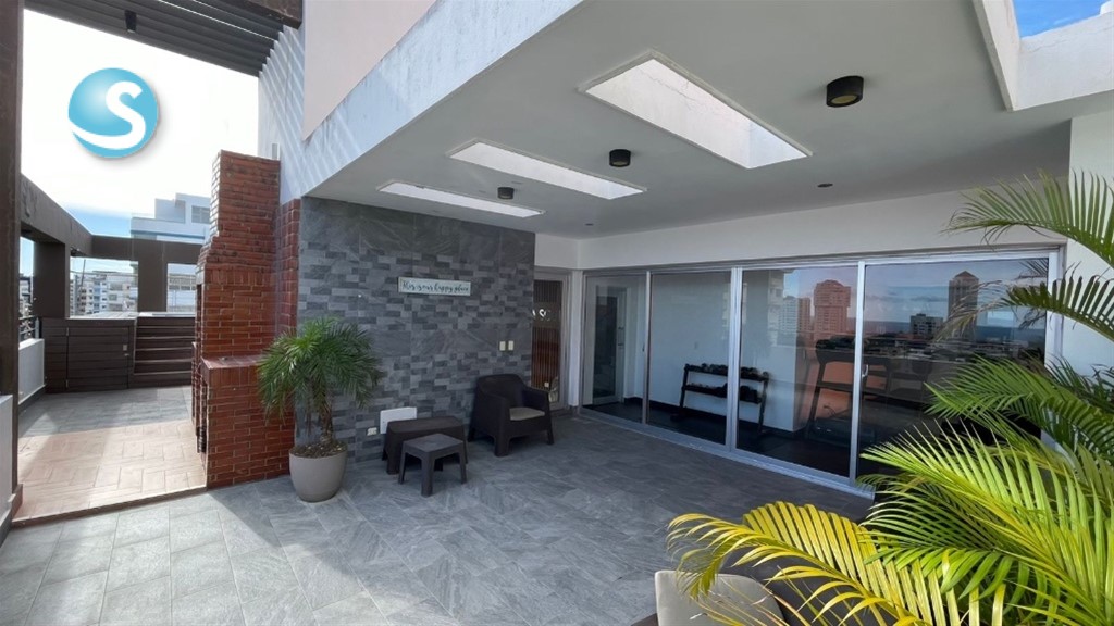 Agente Mayka Estrella / Wildre Acosta Contacto: 849-856-5217 / 829-641-3978 Propiedad: PentHouse Sector: Bella Vista Metraje: 300 mts2 Precio de venta: USD$530,000 Sector Bella Vista En uno de los mejores sectores de la ciudad tenemos este espectacular Pent House con Vista al Mar ?? Sala / Comedor Cocina 3 habitaciones - Principal con Balcon WC, baño con Jacuzzi y ducha - Secundarias WC y baños 2 Medio baño Amplio Family Terraza con Jacuzzi Area lavado Cuarto servicio 2 parqueos paralelos Jacuzzi Terraza Bbq Sauna Baños Lobby