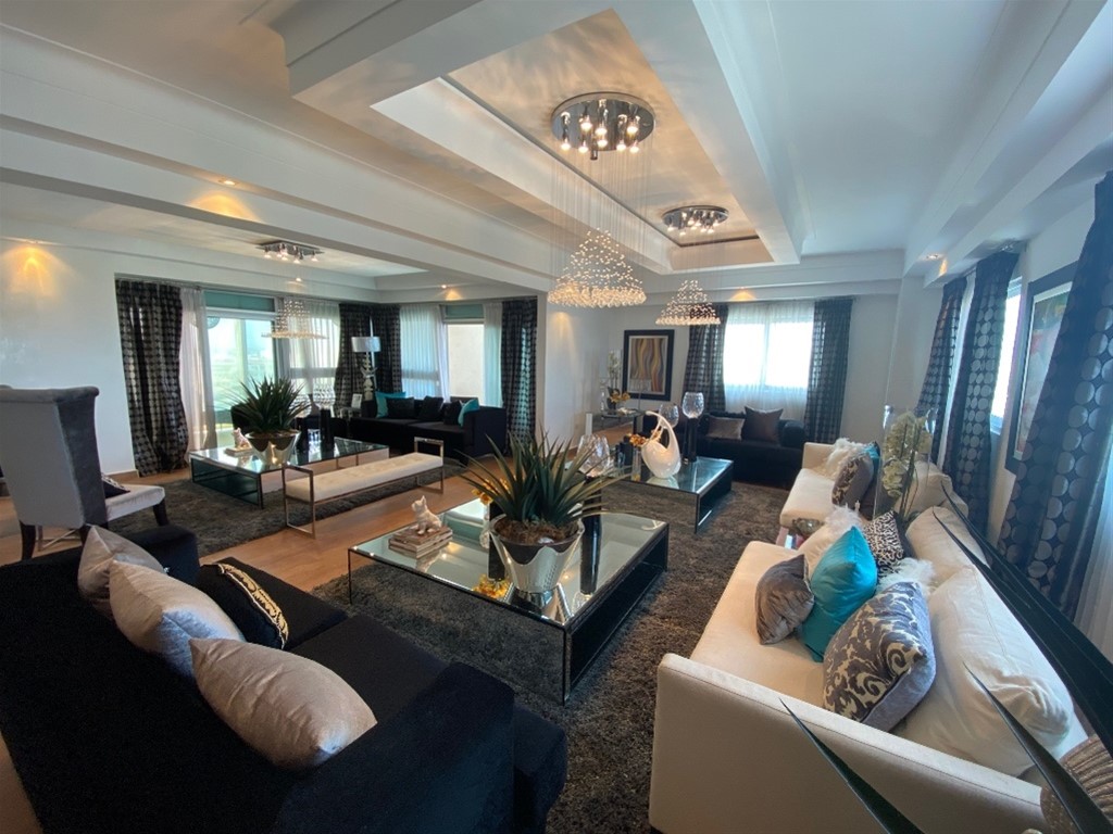 SARASOTA??? (BELLA VISTA)? ?ESPECTACULAR PENTHOUSE de 707.95 MTS Cuenta con 3 niveles de Apartamento.? los 3 pisos del PH el ascensor abre dentro de la propiedad, el cual cuenta con seguridad.? Piso 13 (A´REAS PRIVADAS)? Sala/Family Room? 5 habitaciones? 4 de las habitaciones con walk-in closets y Ban os ? Habitacio´n principal con balco´n tipo terraza? ? Piso 14 ( AREA DE SALAS Y COMEDOR)? ? 2 grandiosas salas? Estudio Sumamente amplio ? Balco´n /terraza? Ban o de visita ? A´rea de Comedor con terraza /Mirador? Cocina? A´rea de lavado? Cuarto de Servicio con su ban o? ? ? Piso 15 (A´REAS SOCIALES) ? A´rea social de Apartamento? Con family Room? Terrazas abiertas ? Terrazas techadas? Picuzzy para 15 o ma´s personas? BBQ ? Vista Franca a la ciudad y al mar 360• ? ? • la propiedad cuenta con 4 parqueos? ? Amenidades de la Torre? Lobby climatizado? Piscina? Gimnasio? Terraza techada ? Terraza destechada? Salo´n multiuso ? Ban os? Seguridad 24 hrs? 2 ascensores? ? Precio? ? US$1,200,000