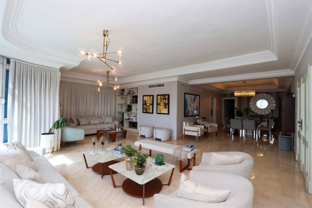 Penthouse en venta ubicado en el sector de Bella Vista; se compone de dos niveles de parqueos y áreas comunes, (un parqueo en el primer nivel, otro soterrado), 11 niveles de dos apartamentos por piso, dos penthouse de dos niveles. Características Terminación de primera Planta Eléctrica Dos parqueos por apartamento y tres para los penth-house. Sistema de seguridad las 24hrs, vehicular y peatonal 3 ascensores, dos con capacidad para 8 personas con llave y acceso exclusivo al lobby de cada apartamento; y ascensor de uso general con capacidad para 15 personas Lobby con Counter. Lockers para cada apartamento Cuarto de conserje con baño Sistema contra incendios en todos los pisos Cisterna con dos bombas de agua Gas común Preinstalación de Aires Acondicionados tipo central Portones eléctricos a control remoto. Escalera de emergencia Sistema de purificación de agua. Descripción de los Apartamentos Primer nivel: 3 habitaciones con baño y walk-in-closet, closet para ropa blanca, 2 salas, estudio, estar familiar, cuarto de desahogo, comedor, mirador, amplia cocina, área de lavado y planchado, cuarto de servicio con baño, closet de ropa blanca, baño de visitas. Segundo nivel: Sala, estar, amplia habitación con dos walk-in-closet, baño con jacuzzi, cabina de hidromasaje y terraza privada, área social con amplia terraza destechada, terraza techada, bar y jacuzzi con capacidad para 5 personas. Terminación Pisos de mármol en habitaciones y áreas sociales, Calentador de agua. Cableado para conexión porcelanato en cuarto de servicio y área de lavado Ventanas y puertas corredizas en cristal y aluminio Gabinetes de cocina en madera preciosa Puertas con jambas y closets de madera preciosa Tope de meseta en granito natural Techos con cornisas en yeso en todas las áreas excepto cuarto de servicio de computadoras. Salidas para cable y teléfono en dormitorios, áreas sociales y cocina Vestidores cubiertos en cedro y/o sabina. Código: 10013 Más Información: Javier Martínez Celular/Whatsapp: 809-330-1727 [email protected] Si busca la mejor opción en Santo Domingo para inversiones, para vivir, llama ahora mismo a Mudate.net, tu inmobiliaria en internet.