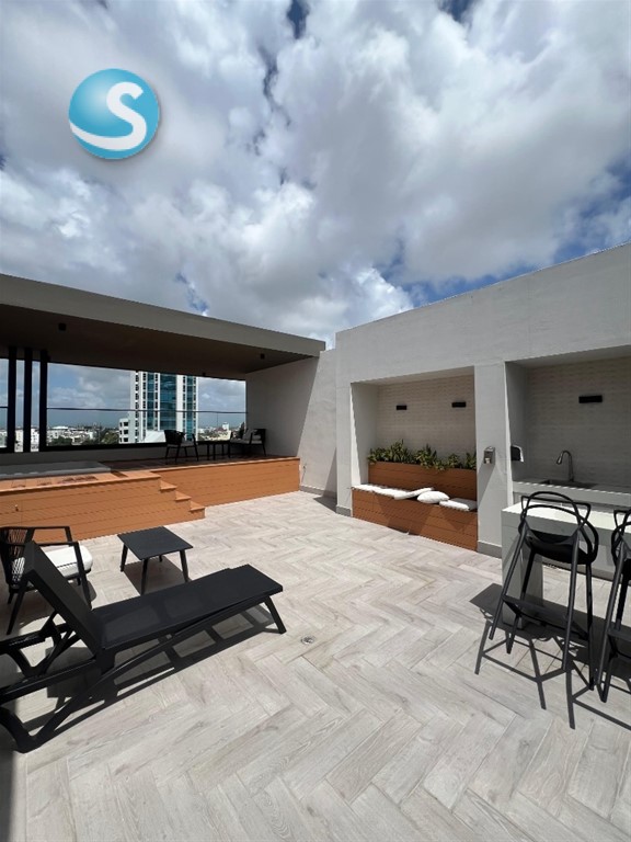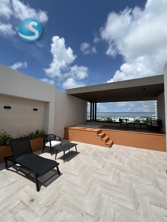 Penthouse en Bella vista Norte de 2 habitaciones con 101.25 mts netos de apartamento y 44.95 metros de terraza techada y 9.11 de terraza destechada. El Apartamento cuenta con: 2 habitaciones cada una con su baño y Walk in closet 1/2 Baño de visitas Sala Comedor Cocina Terraza Privada Habitación de servicio 2 Parqueos Características de la Torre Ascensor de última generación Área Social con Jacuzzi y BBQ Gimnasio Planta eléctrica full Sistema contra incendios Suministro común de gas Sistema de Intercom