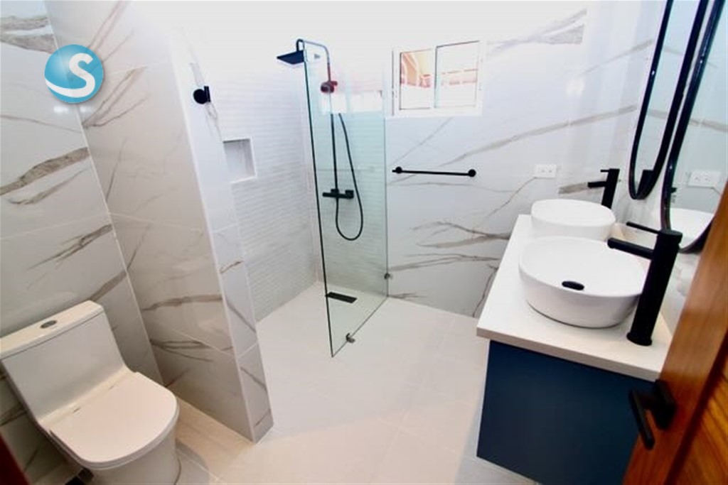 Bella Vista PENTHOUSE 3 NIVELES 360 mts construcción 3 habitaciones + 3 baños 2 Medio baños Visitas Sala, Estar, Comedor Estudio Cerrado TERRAZA + GAZEBO Moderna Cocina Abierta Cocina Caliente Área Lavado, Cuarto servicio TOTALMENTE REMODELADO 2 Walk in Closet en Cedro Pisos Porcelanato Madera Preciosa Techos en Yeso + Luces led LINEA BLANCA NUEVA 2 Parqueos Techados Amplio Ascensor Planta Full, Portón Eléctrico Mantenimiento RD$9,000 US$ 435,000 F/H