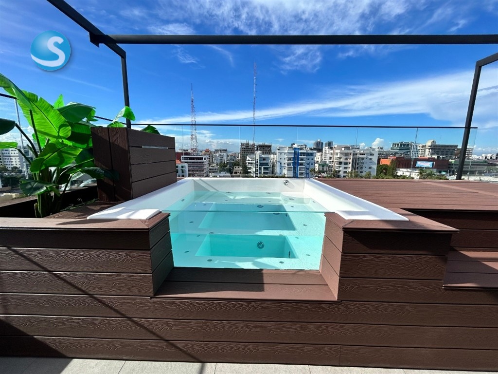 Se vende amplio penthouse de tres niveles a estrenar en Bella Vista •315 m2 •2 Parqueos paralelos techados Distribución por piso : Nivel 8: •Tres habitaciones cada una con su baño, la principal con dos walking clóset y balcón privado Nivel 9: •Recepción •Sala •Comedor •Estudio •Cocina •Balcón •Cocina •Área de lavado •Habitación de servicio Nivel 10: •Terraza privada techada y semi destechada de 68 metros con •Picuzzi •Lounge bar •BBQ Características de la Torre: •Lobby amueblado •Gym •Área de niños •Terraza techada con mini Bar Picuzzi •Terraza destechada amueblada •Portón Electrónico •Ascensor •Planta Eléctrica •Intercom •Seguridad las 24 horas Precio de venta: US$550,000