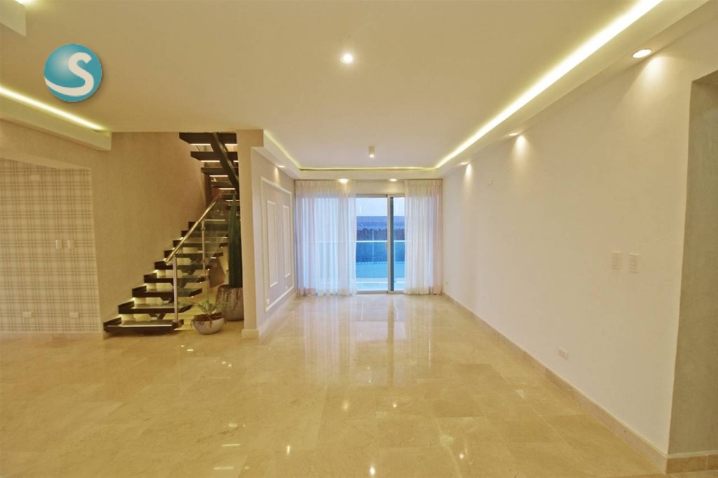 Hermoso Penthouse ubicado en Bella Vista 395 mt2 Piso 10, 11 y 12 4 habitaciones 4.5 baños Sala Comedor Desayunador Cocina fria y caliente Estar familiar Terraza Habitación de servicio 3 parqueos techados y paralelos CARACTERISTICAS DEL RESIDENCIAL Lobby amueblado y climatizado 2 ascensores Planta eléctrica Área social con piscina, gimnasio, terraza techada y destechada con bar. Área de juegos de niños. Seguridad y conserjería 24 horas Control de acceso. Precio US$725.000 Información. Carlos Tejeda 809-454-7240