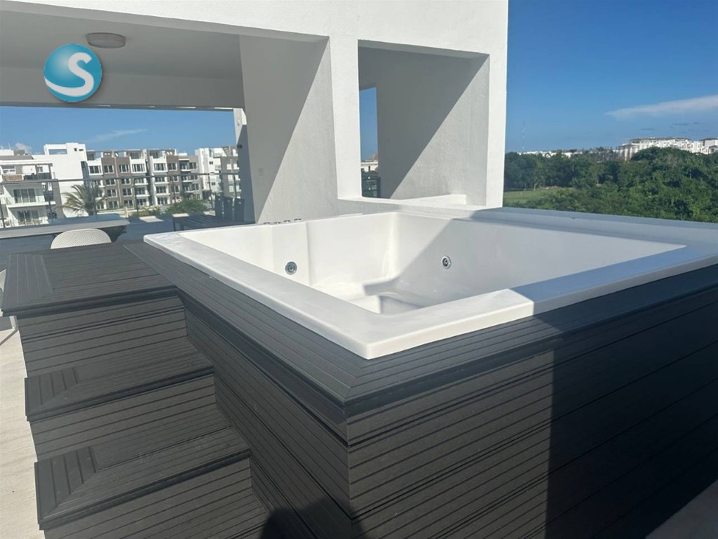 Invierte en este hermoso y ventilado apartamento tipo Penthouse en Bávaro- Punta Cana. Vecino del Hotel Hard Rock y Casino Y a unos 5 minutos caminando a la playa . 308.95mt. Totales 3er. Y 4to. Piso con 150.7 MT de Apartamento y 145.40 Mt. De terraza privada Cuenta con: ?2 amplias Habitaciones ? Walking Closet ?2 Baños y medio ?Sala- Comedor ?Balcones ?Área de lavado ?Un parqueo de 12.50Mt. ?Terraza con pre-instalación de Jacuzzi y medio baño ? Hermosas vistas ? Acceso al Campo de Golf ?? ? Vecina del Hotel Hard Rock ?parqueo para visita ? Ventanas anti-ruido ? A unos 5 minutos de la Playa ? Piscina de adultos y niños ?Incluye todo el mobiliario premium y decorado por un decorador profesional ??Beach Club Privado con Restaurante y Piscina infinity frente al mar ???? Y lo mejor es que aplica para el beneficio de Confotur !! contáctame y te explico el gran ahorro que tendrás de impuestos. Costo de mantenimiento US$2.00xMt. US$620 aproximados Precio US$395,000